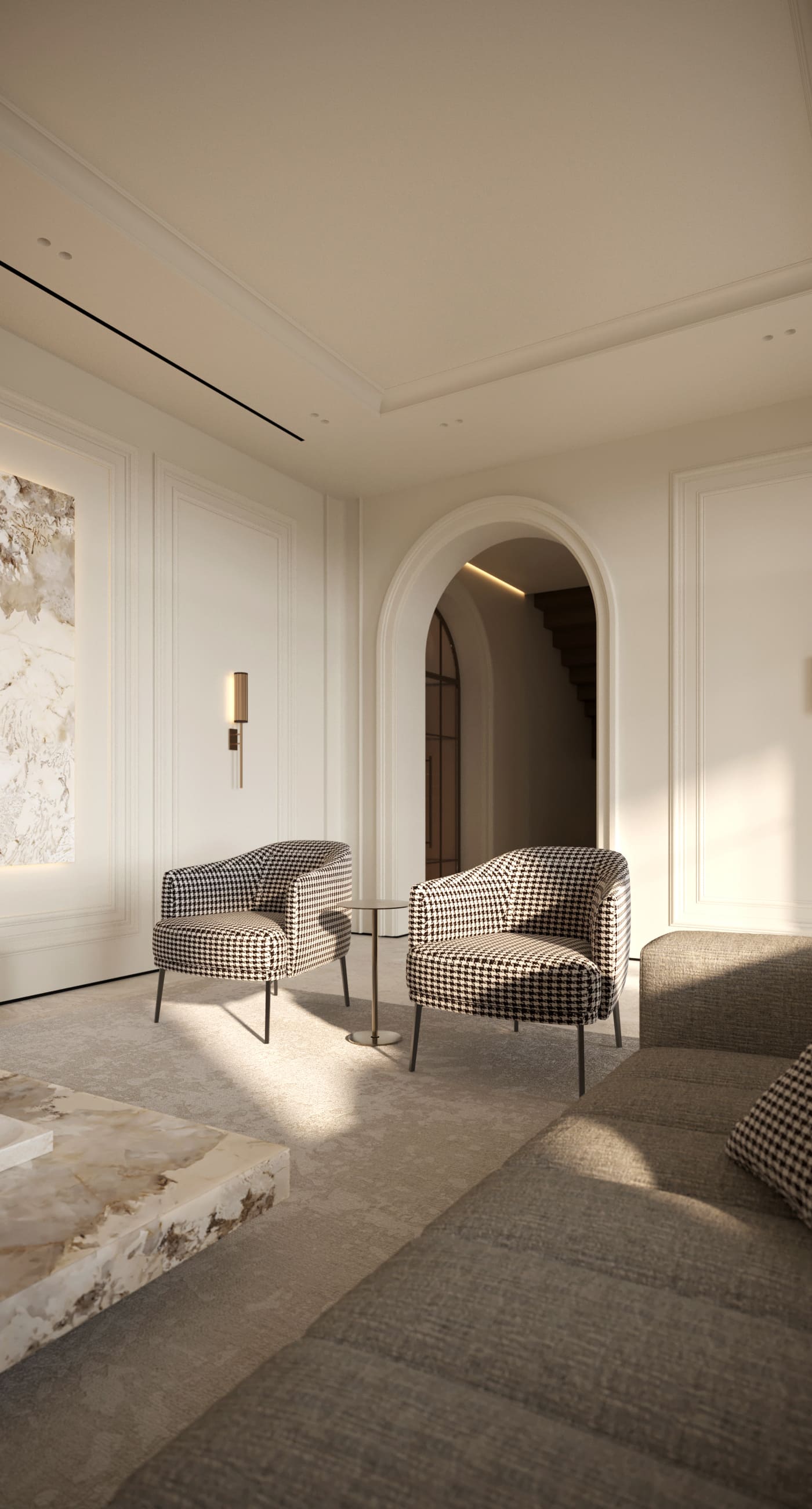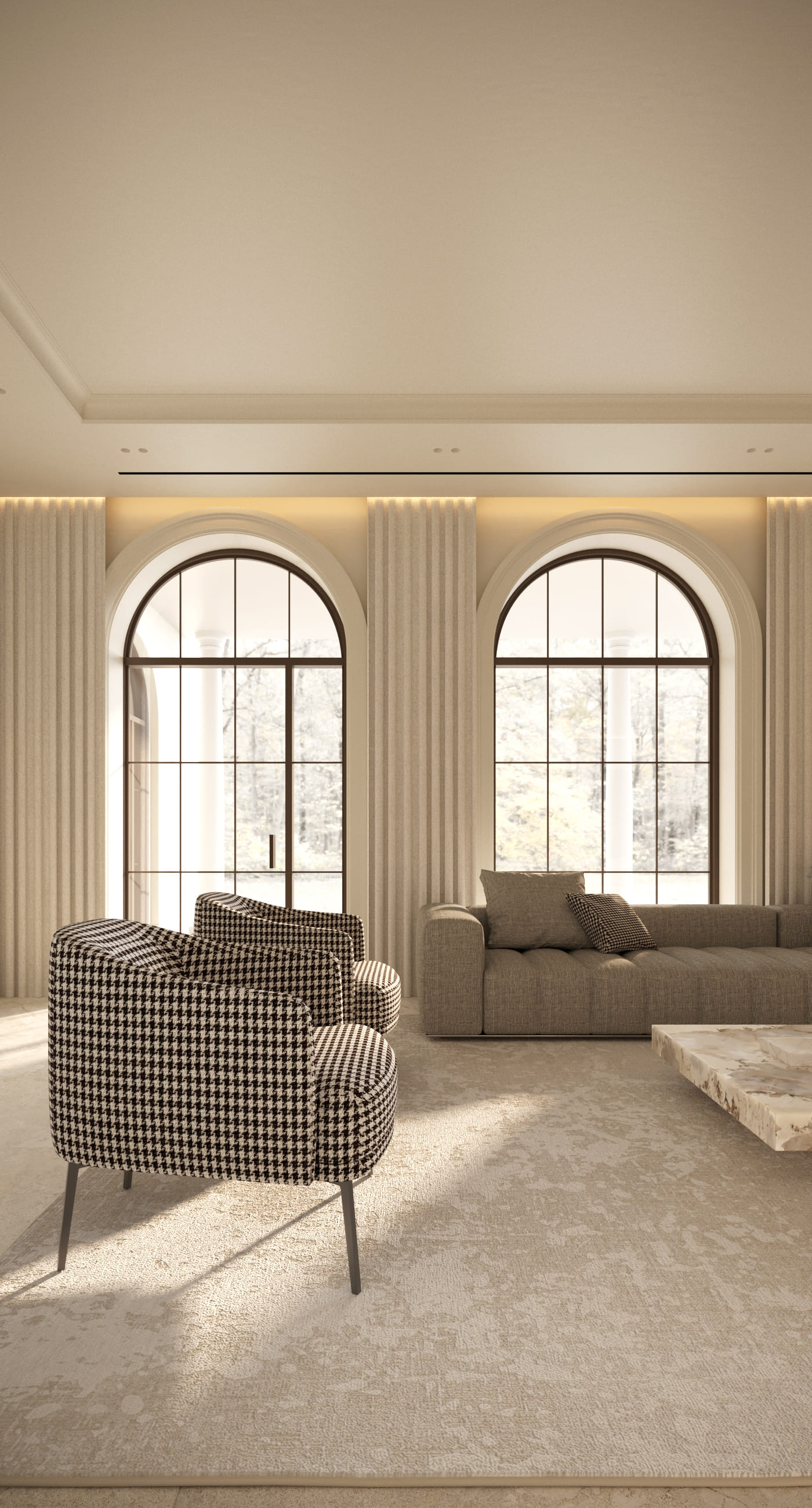 Проєкт створено у філософії CLASSIC CAVE — стилістичному напрямі, що поєднує архетипічну класику з сучасною пластикою. Вишукані пропорції, м’які лінії та світлові акценти формують середовище, де кожна деталь працює на цілісність і глибину. Візуальні осі, симетрія й ритм у деталях організовують простір як сучасну архітектурну композицію з вічними цінностями.