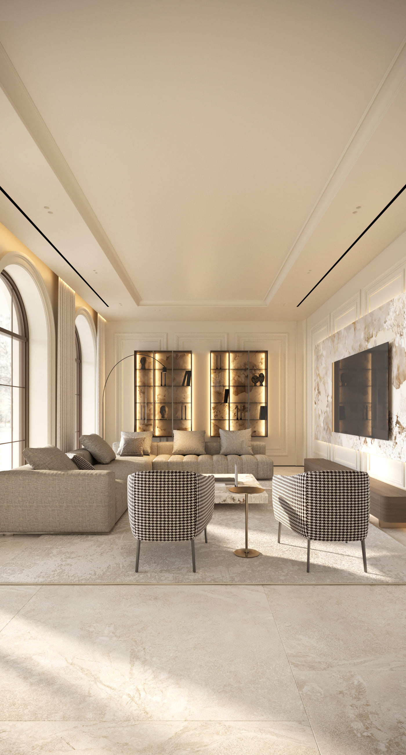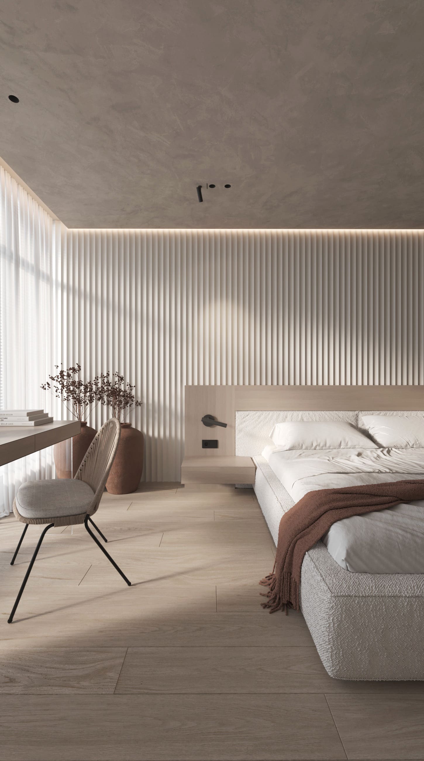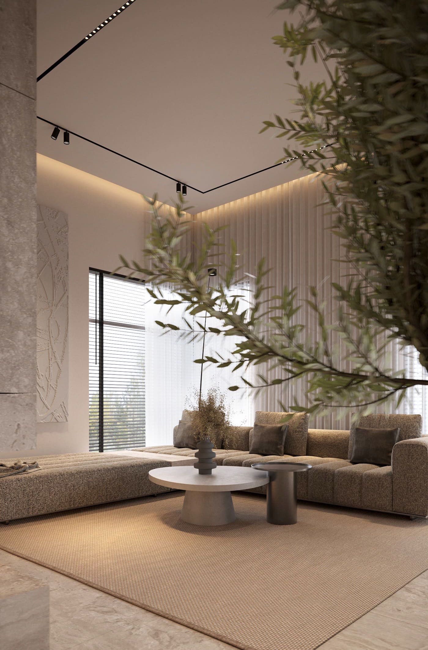 На першому (підвальному) рівні розміщено технічні приміщення, спортзал та кабінет — зони, які потребують відокремлення та концентрації. Другий рівень (перший поверх) об'єднує соціальні простори: кухню, їдальню та вітальню з виходом на терасу. Простір відкритий, динамічний, створений для комунікації та прийому гостей. Третій рівень (другий поверх) — приватна зона зі спальнями, гардеробними і ванними кімнатами, організована навколо центрального холу, що дає змогу зберігати відчуття спокою та ритму.
