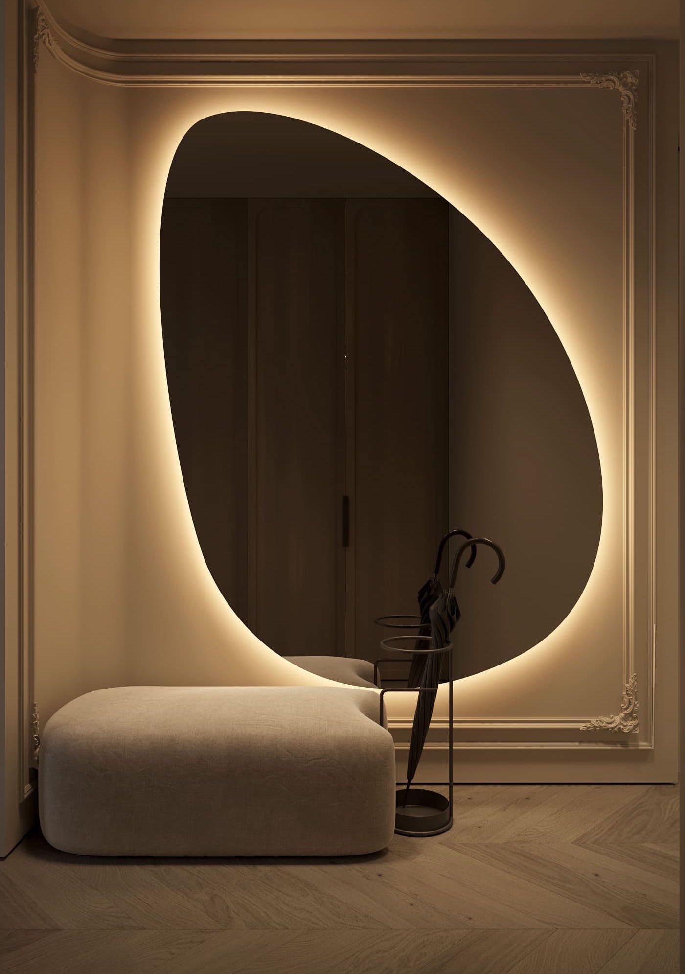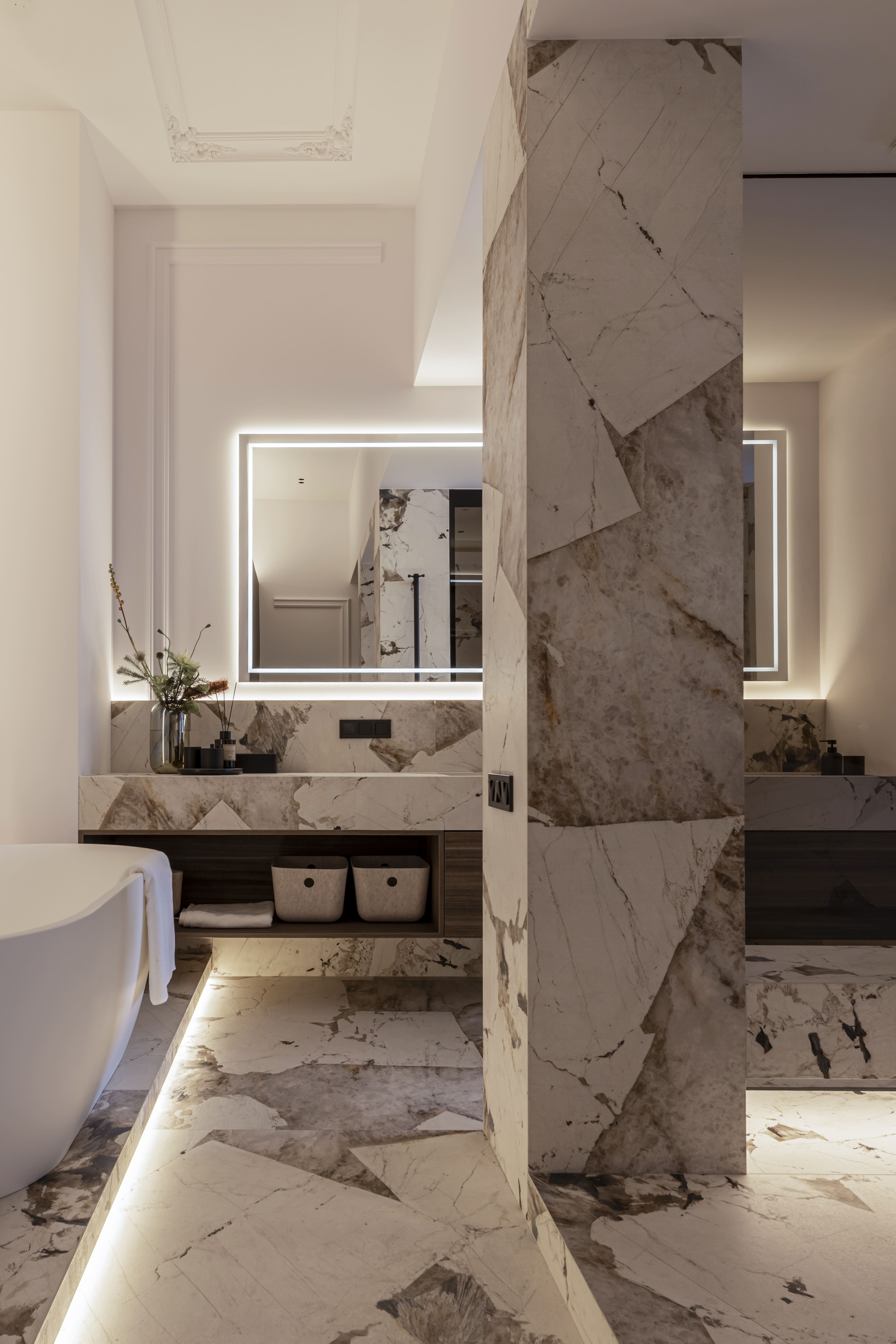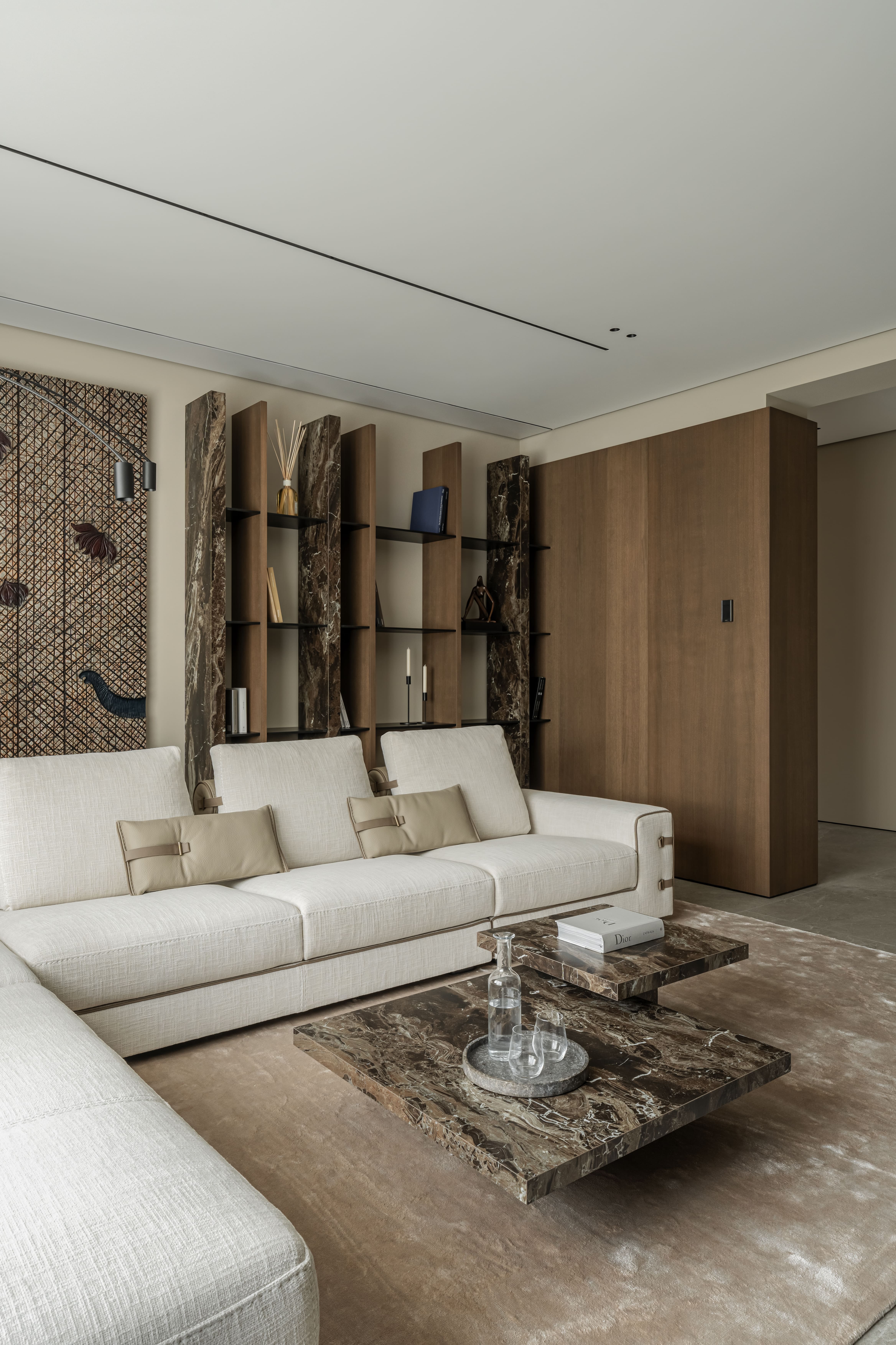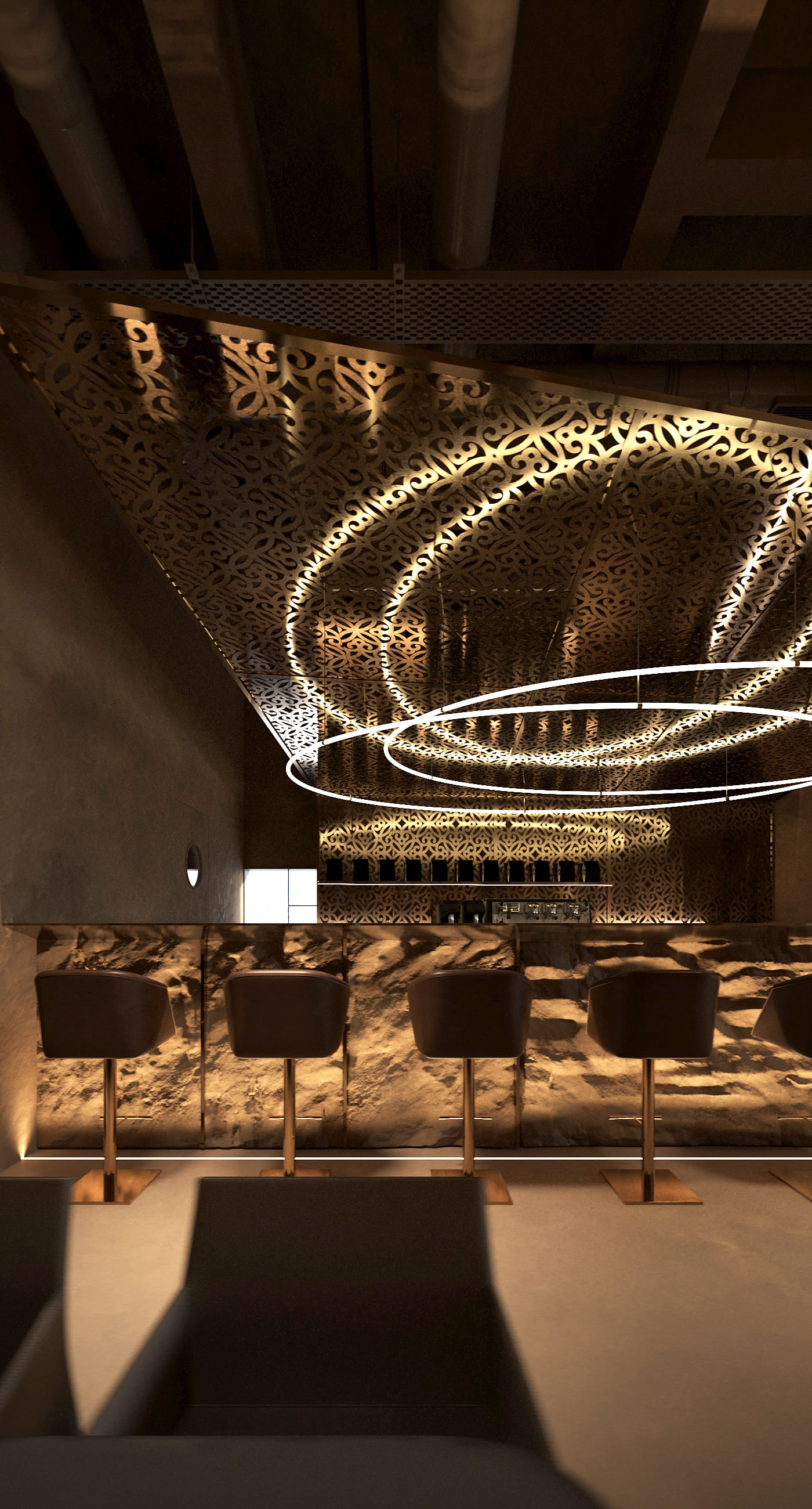 На першому (підвальному) рівні розміщено технічні приміщення, спортзал та кабінет — зони, які потребують відокремлення та концентрації. Другий рівень (перший поверх) об'єднує соціальні простори: кухню, їдальню та вітальню з виходом на терасу. Простір відкритий, динамічний, створений для комунікації та прийому гостей. Третій рівень (другий поверх) — приватна зона зі спальнями, гардеробними і ванними кімнатами, організована навколо центрального холу, що дає змогу зберігати відчуття спокою та ритму.